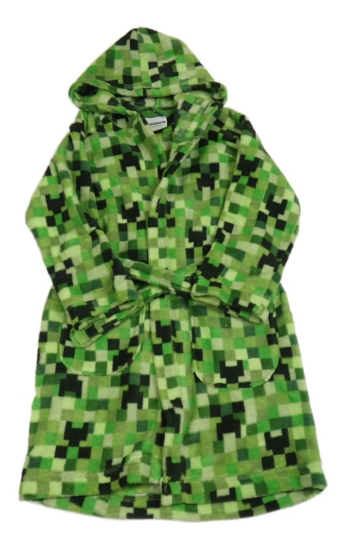 Zeleno-čierny kockovaný chlpatý župan s kapucí - Minecraft George