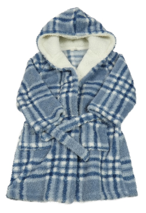 Modro-biely kockovaný huňatý župan s kapucňou Nutmeg