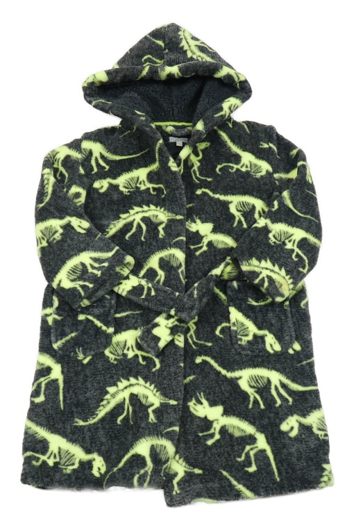 Sivo-čierny melírovaný plyšový župan s kostrami dinosaurů a kapucňou Bluezoo