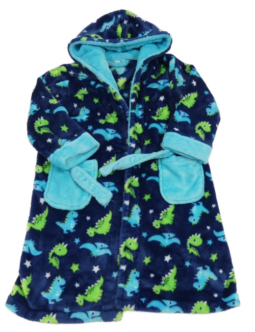 Tmavomodrý plyšový župan s diny a kapucňou
