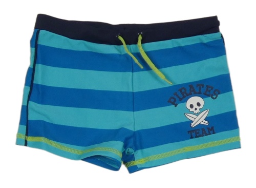 Modré pruhované nohavičkoé plavky s lebkou Topolino