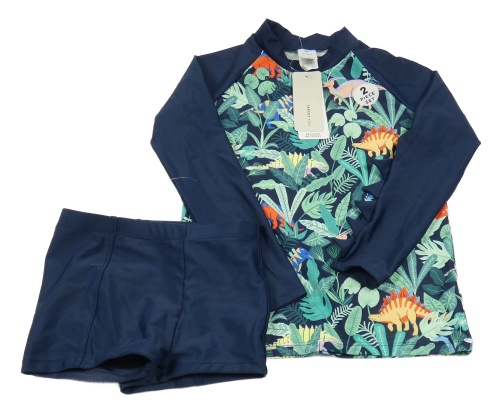 Nové - 2 set - tmavomodro-farebné UV tričko s dinosaury + nohavičkové plavky