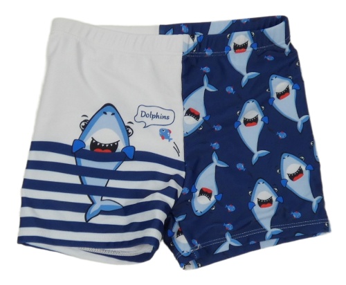 Tmavomodro-biele nohavičkové plavky so žralokmi a pruhmi SHEIN