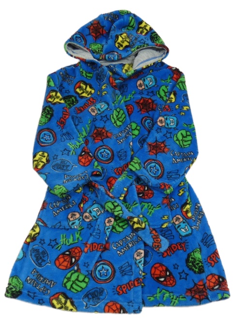 Tmavomodrý plyšový župan so superhrdinami a kapucňou Marvel