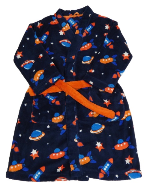 Tmavomodrý chlpatý župan s planetami a kapucňou M&S