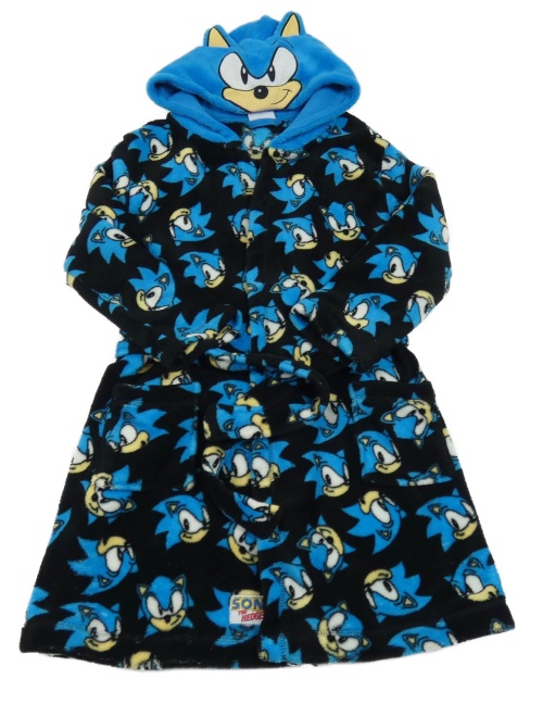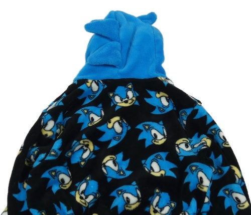 Čierno-modrý plyšový župan so Sonicem a kapucňou
