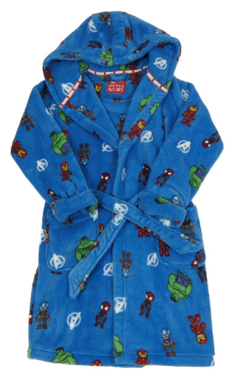 Modrý chlpatý župan s hrdinami a kapucňou Tu