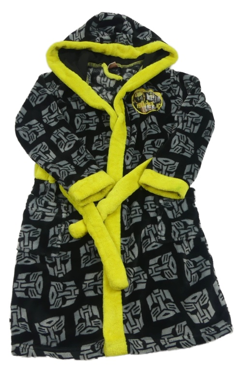 Čierno-sivo-žltý chlpatý vzorovaný župan s kapucňou