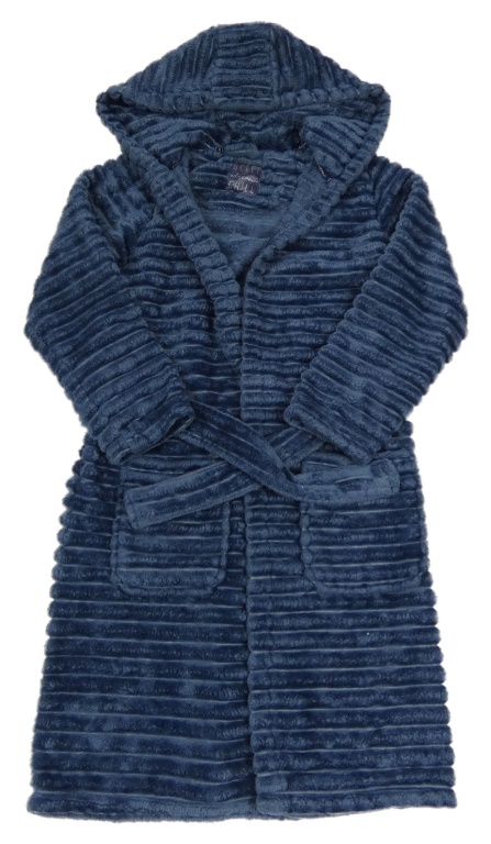 Tmavomodrý rebrovaný chlpatý župan s kapucňou Tu