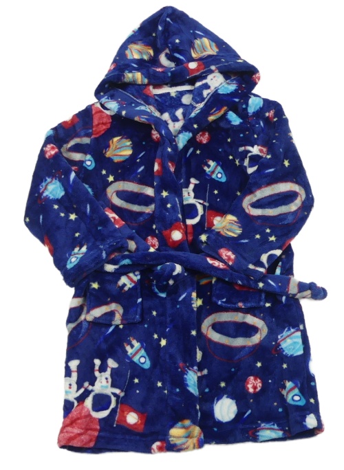 Tmavomodrý plyšový župan s vesmírom a kapucňou