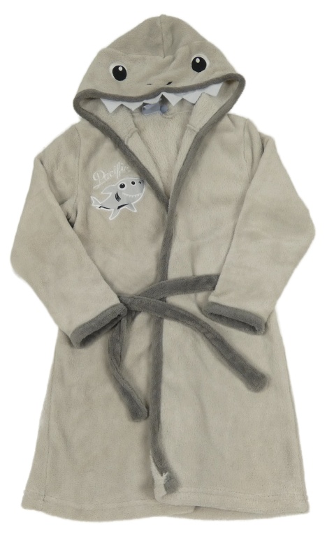 Sivý chlpatý župan so žralokom a kapucňou