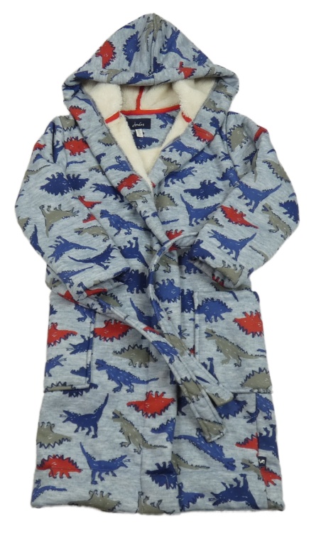 Sivý melírovaný zateplený župan s dinosaurami a kapucňou Joules