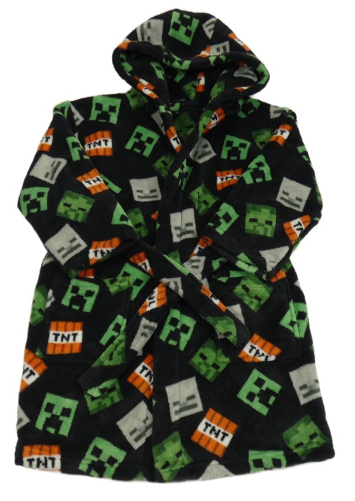 Čierny vzorovaný plyšový župan s kapucí - Minecraft Next
