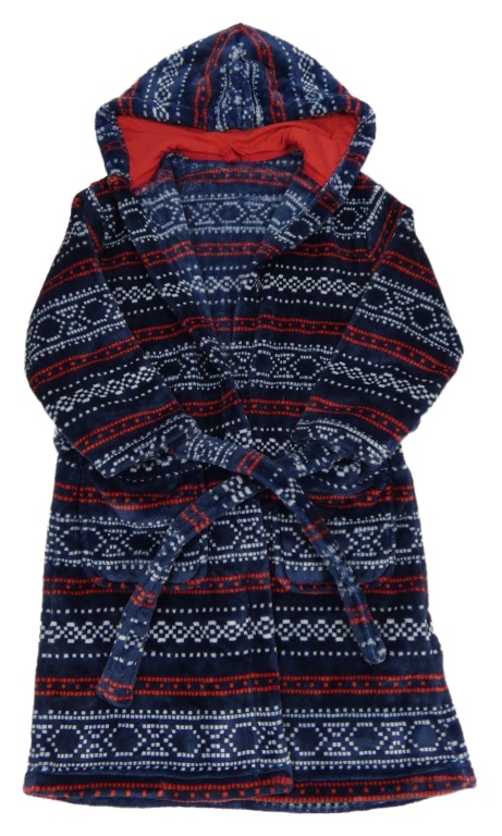 Tmavomodro-červený vzorovaný chlpatý župan s opaskom a kapucňou M&S