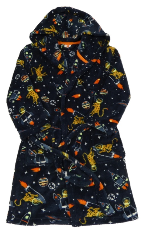 Tmavomodrý chlpatý župan s obrázkami a kapucňou Hema