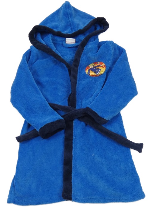 Modro-tmavomodrý plyšový župan s Požárníkem Samem a kapucňou