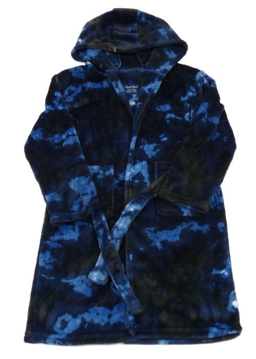 Tmavomodro-modrý vzorovaný chlpatý župan s kapucňou Primark