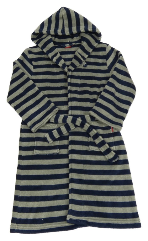 Tmavomodro-sivý pruhovaný chlpatý župan s kapucňou Manguun