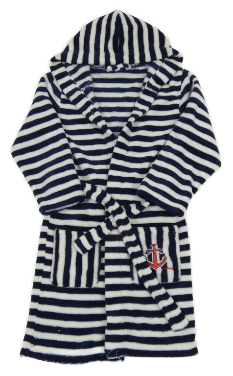 Tmavomodro-biely pruhovaný chlpatý župan s kapucňou PlayShoes