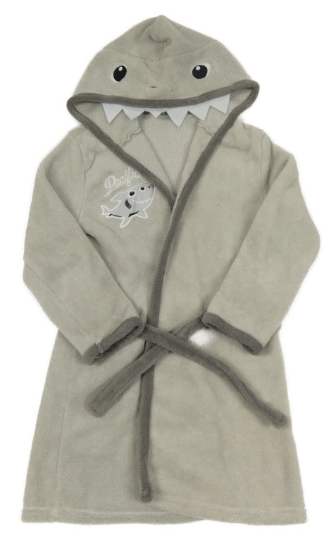 Svetlošedá -sivý plyšový župan so žralokom a kapucňou