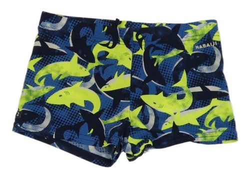 Modro-tmavomodro-neónově žlté nohavičkové plavky so žralokmi Nabaiji