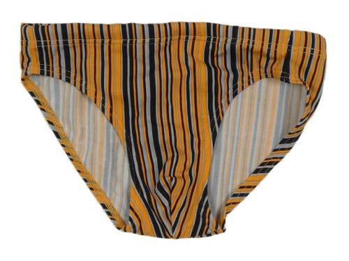 Oranžovo-čierno-sivé pruhované chlapčenské plavky