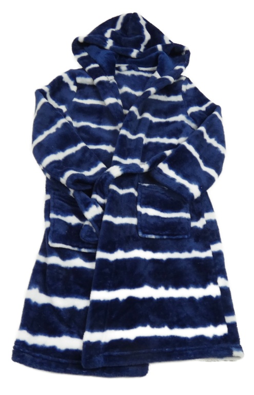 Tmavomodro-biely pruhovaný plyšový župan s kapucňou dunnes