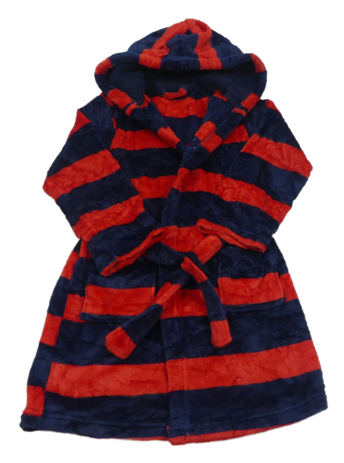 Červeno-tmavomodrý pruhovaný plyšový župan s kapucňou Nutmeg