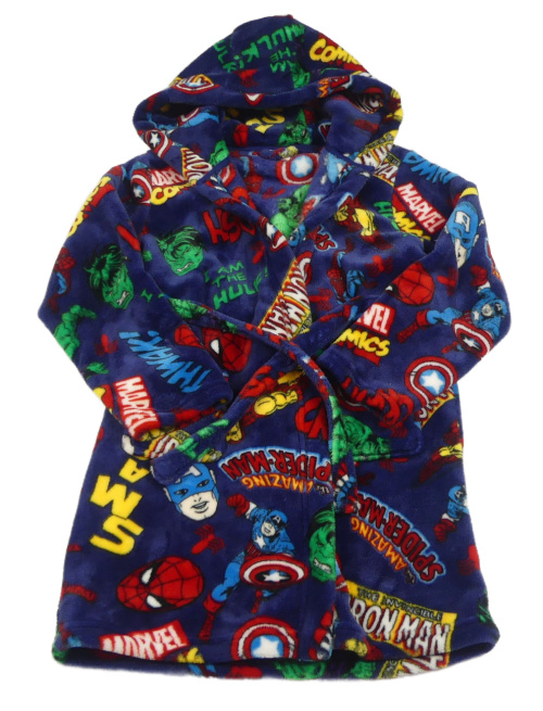 Tmavomodrý chlpatý župan s Avengers a kapucňou Matalan