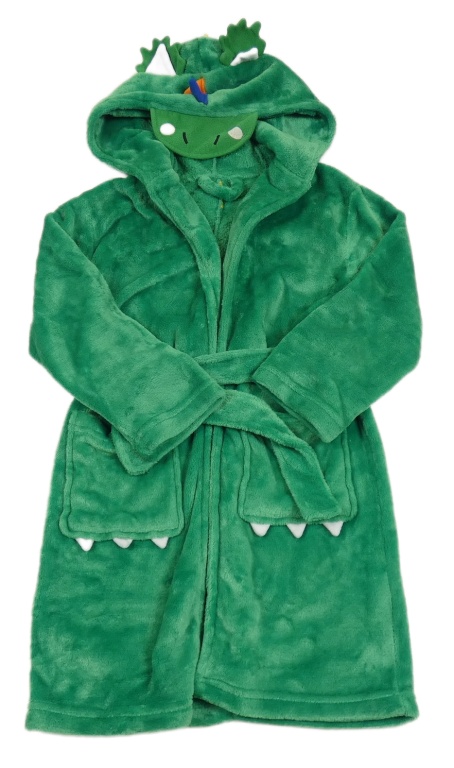 Zelený chlpatý župan s barevnými ostny a kapucí - dino