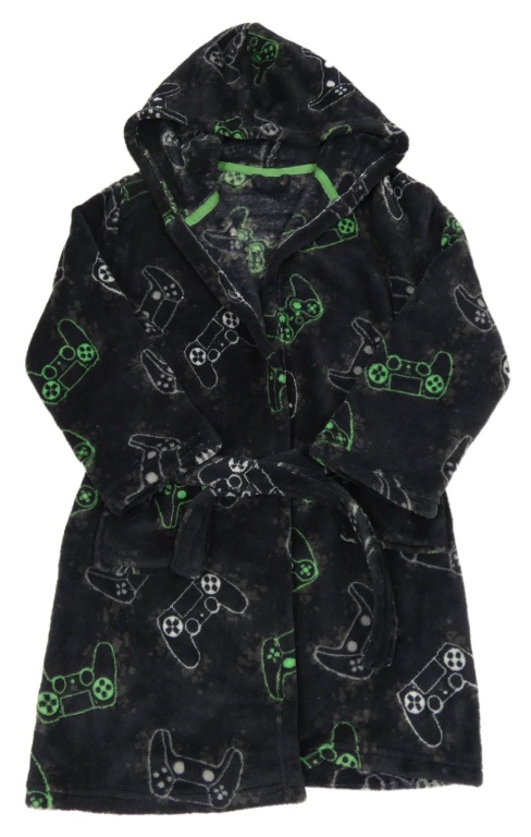Antracitový chlpatý župan s ovladači a kapucňou Studio
