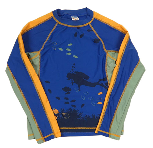 Safírovo-světlekhaki-oranžové UV tričko s potápěčem PUSBLU