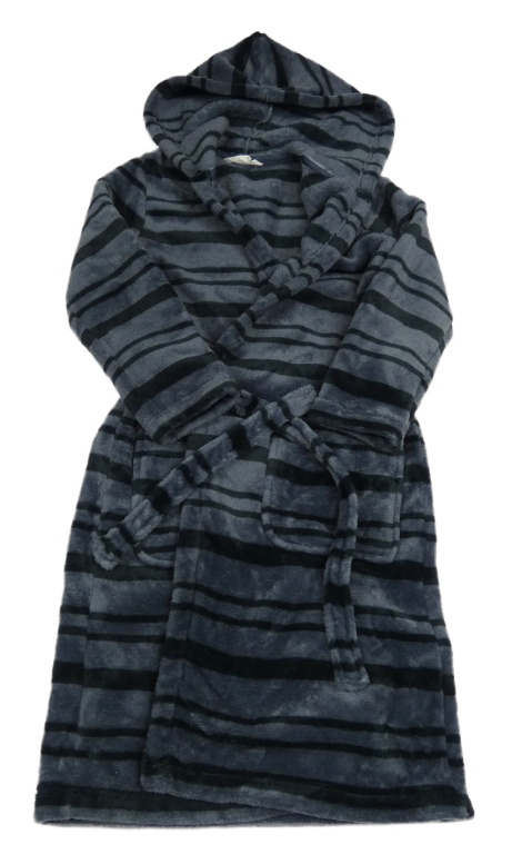 Tmavošedo-čierny pruhovaný chlpatý župan s kapucňou