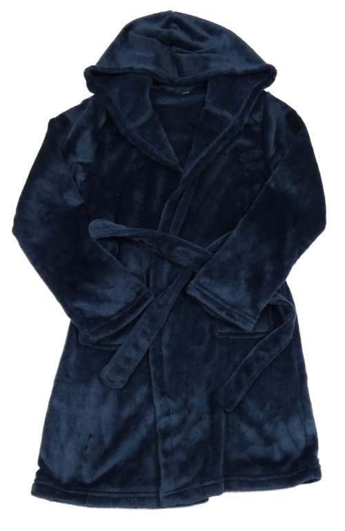 Tmavomodrý plyšový župan s kapucňou DESTINATION
