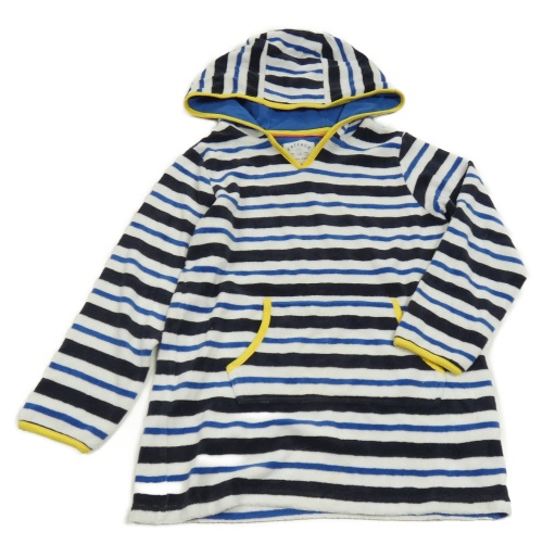 Bielo-tmavomodro-čierny pruhovaný froté župan s kapucňou Fat Face
