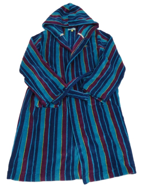 Modro-fialový pruhovaný chlpatý župan s kapucňou Baker