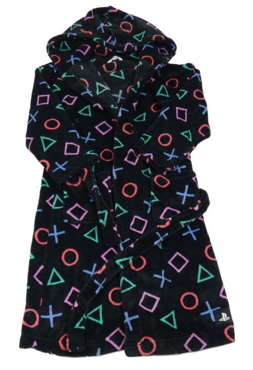 Čierno-farebný vzorovaný plyšový župan s kapucí - PlayStation M&S