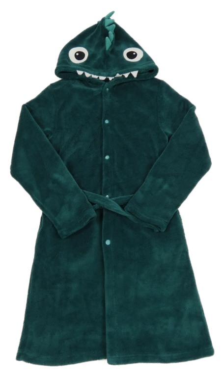 Tmavozelený chlpatý župan s príšerkou a kapucňou