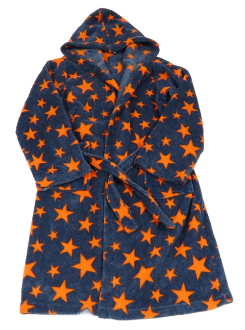Tmavomodro-oranžový plyšový župan s hviezdami a kapucňou Bluezoo