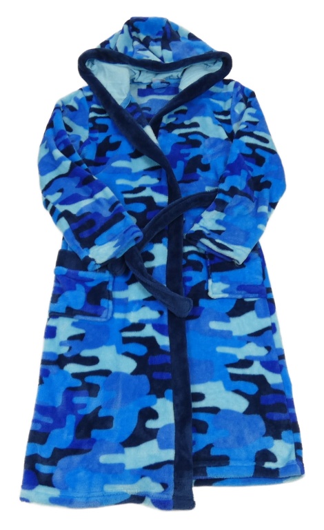 Modrý army chlpatý župan s kapucňou