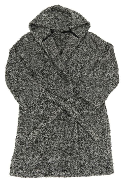 Sivo-čierny melírovaný chlpatý župan s kapucňou Studio
