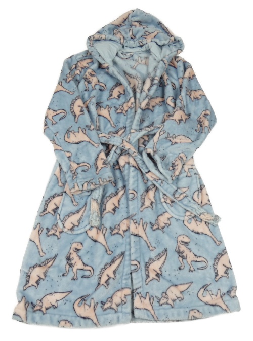 Svetlomodrý chlpatý župan s dinosaurami a kapucňou George