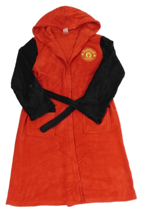 Červeno-černý chlupatý župan Manchester United s kapucňou
