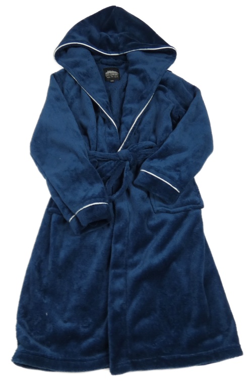 Tmavomodrý chlpatý župan s kapucňou