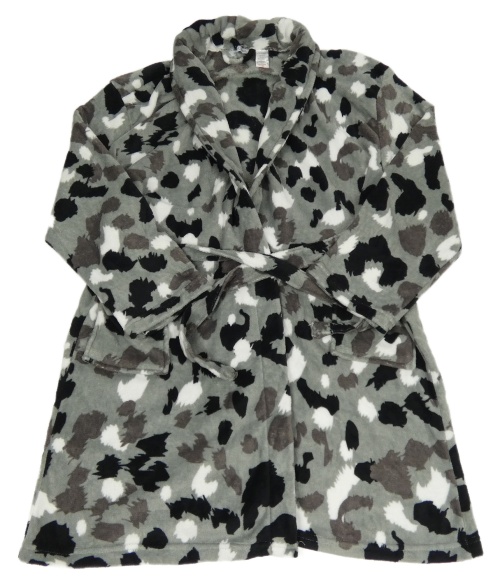 Sivo-bielo-čierny bodkovaná ý plyšový župan