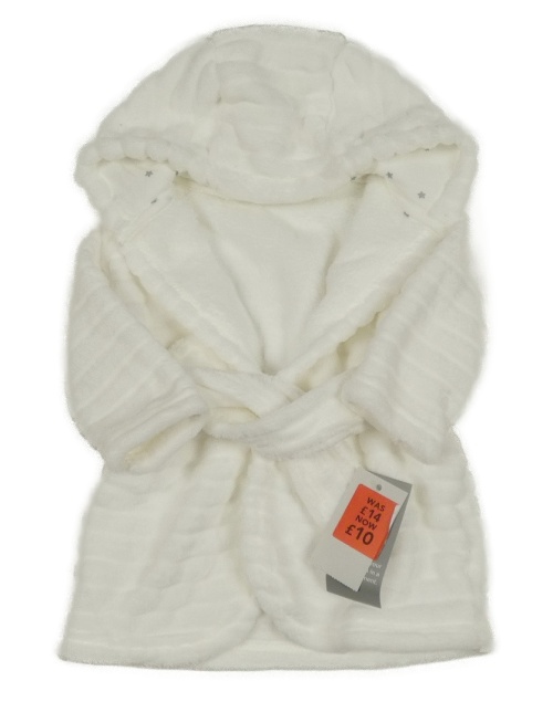 Nové - biely rebrovaný plyšový župan s kapucňou George