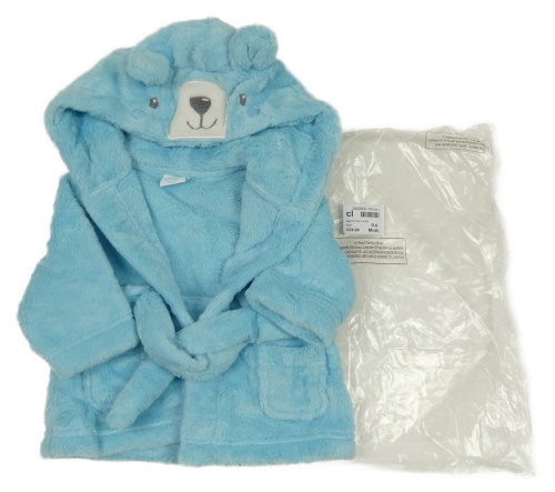 Nové - svetlomodrý chlpatý župan s kapucňou s medvěďom