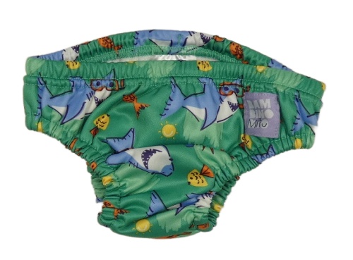 Zelené plenkové plavkové nohavičky so žralokmi