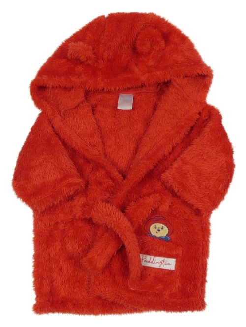 Červený chlpatý župan s medvídkem Paddington a kapucňou