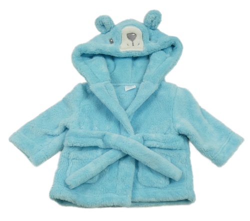 Svetlomodrý plyšový župan s kapucí - medvedík